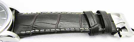 ケース裏はシースルーバックになっています。ダークブラウンバンドは専用尾錠が採用となっています。 |
